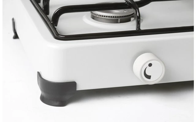 Zwei- oder Dreiflamm-Gaskocher mit stabilem, pulverbeschichtetem Metallgehäuse und Deckel.