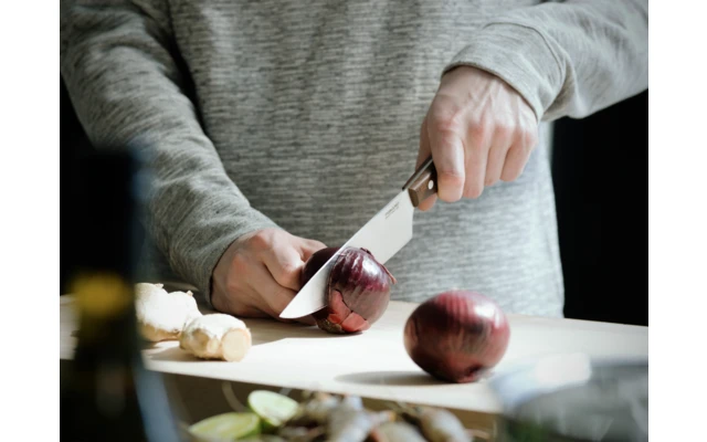 Die Norr Messerserie bietet eine solide und authentische Erfahrung für klassisches Schneiden. Hochwertige Materialien machen sie zu einer nachhaltigen und wirtschaftlichen Wahl. Das große Norr Kochmesser für alle Zwecke hat eine starke Klinge, die es perfekt für die meisten Schneidaufgaben macht, z. B. zum Hacken von Fleisch und Gemüse. Die Klinge ist aus hochwertigem deutschem rostfreiem Stahl gefertigt. Das Griffmaterial ist nachhaltig beschafftes FSC (Forest Stewardship Council) 70 % zertifiziertes norwegisches Ahornholz, das zur Erhöhung der Stabilität und Härte mit Kebony behandelt wurde.