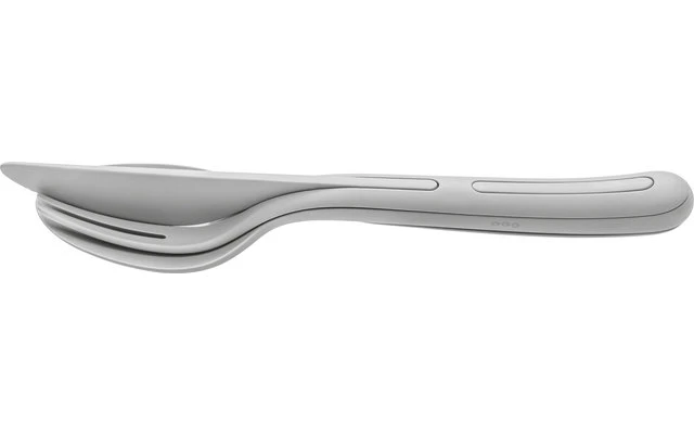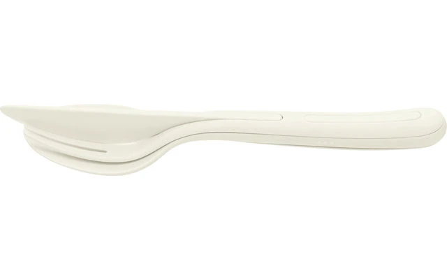 Das perfekte Besteck für draußen und unterwegs, in ordentlicher Größe! Messer, Gabel und Löffel lassen sich ineinanderstecken – zum Lösen einfach das Messer an der Spitze anheben und nach unten herausziehen. Liegt gut in der Hand und passt mit seinem Leichtgewicht wirklich in jede Tasche. Wiederverwendbar.