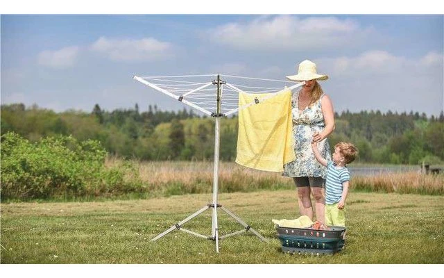 Diese Wäschespinne bietet eine großartige Möglichkeit, um Kleidung auf dem Campingplatz zu trocknen.