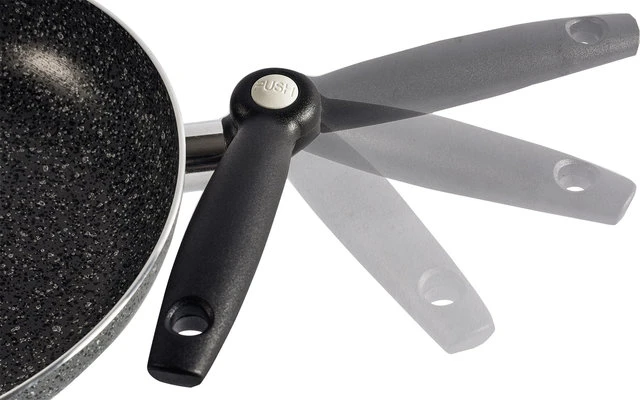 Aluminium Pfanne in Granitoptik. Innen mit hochwertiger Antihaftbeschichtung. Besonders platzsparend durch den klappbaren Griff.